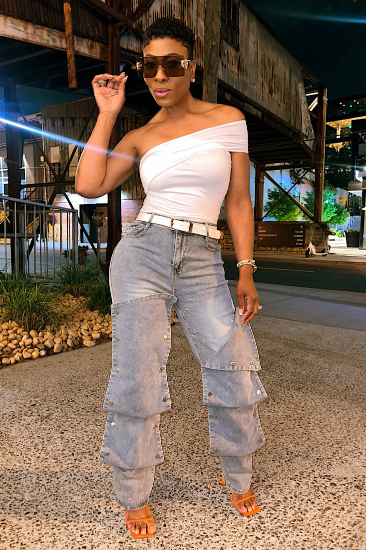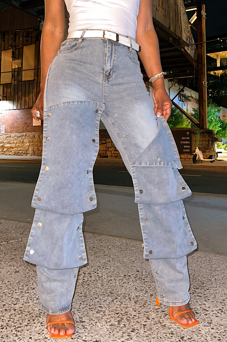 These jeans? Baby, they don’t play fair. The Button Me Up Baby Jeans bring drama, dimension, and undeniable edge. Featuring bold snap-button details with layered cutouts that serve curves and confidence, these jeans are built for the Queen who’s not afraid to remix tradition.