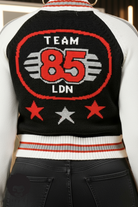 A cozy, heavy-weight knit bomber with varsity energy and a modern cropped fit. Raglan sleeves with sport stripes, ribbed trim, and that bold TEAM 85 LDN back graphic give it throwback letterman vibes—without the bulk. Zip-front makes it easy to style open or closed, and the oversized cut layers perfectly over tees, tanks, or bodysuits.