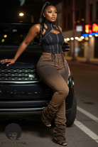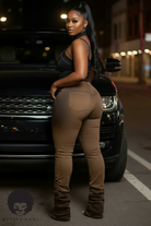 Meet the Cocoa Crush Stacked Jeans—rich mocha skinnies cut to hug your curves and finish in a dramatic stacked leg for that puddled, runway look. The high-rise waist smooths the midsection while soft 4-way stretch moves with you from day to night. Clean front, belt loops, and a sleek, elongating fit make these an easy match with bodysuits, crops, and blazers. Style them with heels to show off the stacks or with sneakers for an off-duty vibe.