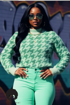 Turn up the charge in the Cozy Hound Hues Sweater - Green—a plush, cozy pullover with bold houndstooth that gives instant attitude. The soft brushed feel, ribbed trims, and pop-of-green palette make it the knit that steals the spotlight while staying wearable all day. Toss it over denim, flares, or a flirty skirt for an effortless, luxe finish.
