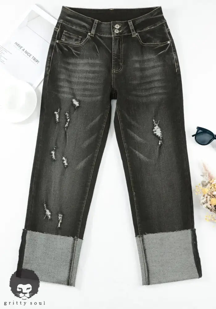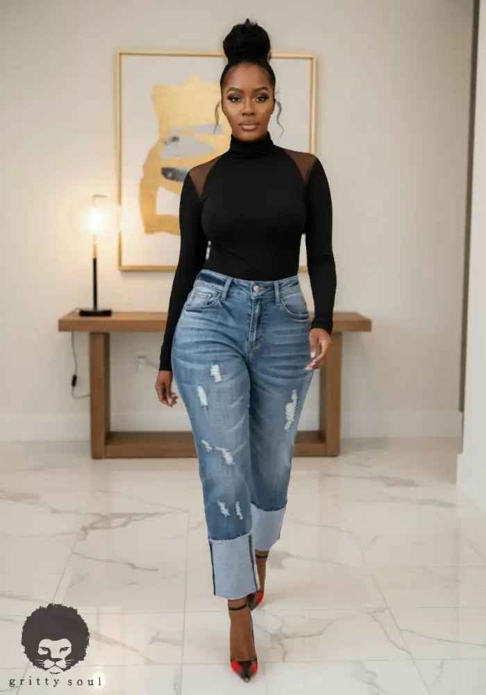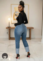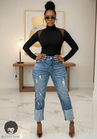 The Cuffed + Cut Jeans bring that bold, street-smart flavor with just enough edge for your everyday slay. The distressing is strategically placed to keep the look trendy without doing too much. The standout flip cuff hem is the moment — giving you that elevated, fashion-forward vibe whether you dress it up with heels or keep it low-key.