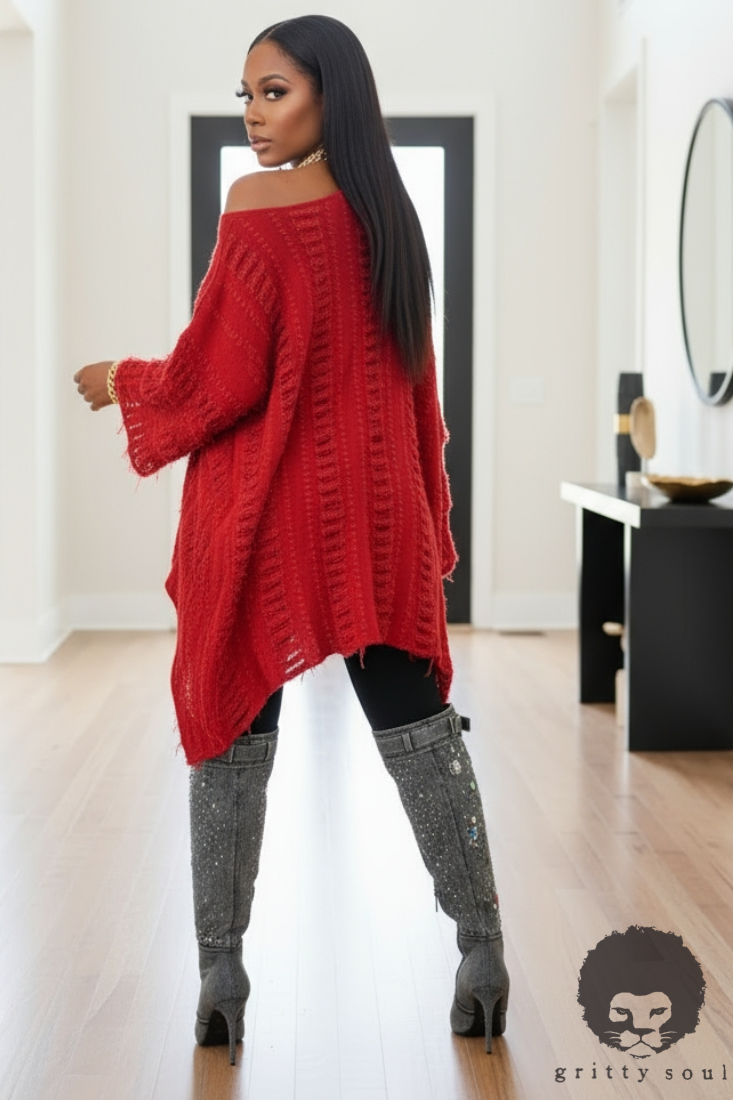 - Ripped denim-inspired oversized asymmetric top