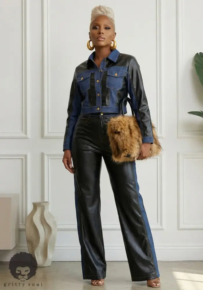 Derricka Denim & Faux Leather Set