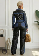 The Derricka Denim & Faux Leather Set is a beautiful lightweight set built for women who like their style bold, structured, and unapologetic. This two-piece moment blends rich blue denim with smooth faux leather for a powerful contrast that turns heads without trying. The cropped utility-style jacket defines the waist, while the wide-leg pants flow with confidence and attitude. It’s giving grown, it’s giving boss, and it’s giving don’t underestimate her.