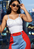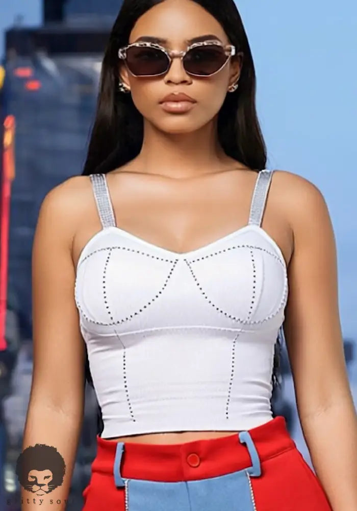 The Diamond Dots Tank turns a classic bustier silhouette into a sparkle-worthy statement. With delicate rhinestone detailing tracing every curve, this sleek stretch tank delivers both comfort and glam. Perfect for dressing up your denim or pairing with a sleek skirt, it’s your go-to for effortless shine.