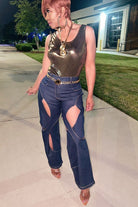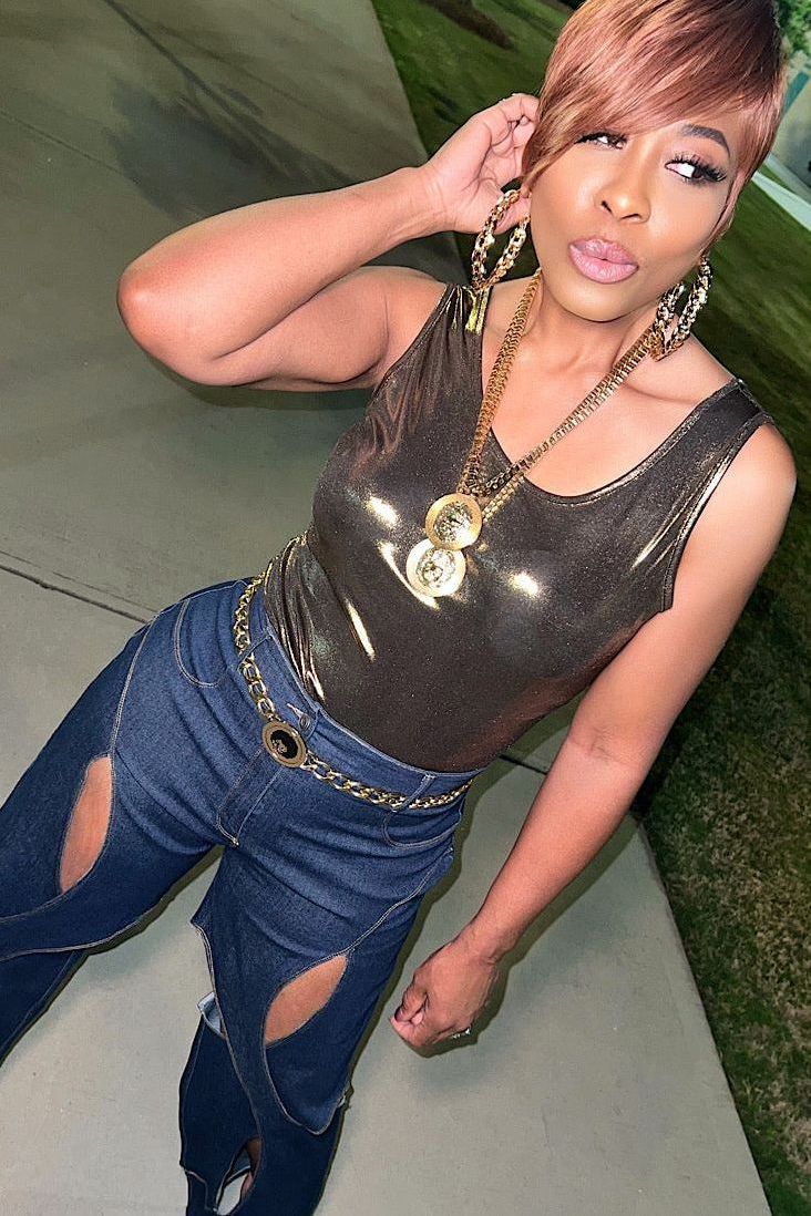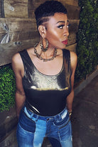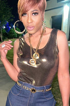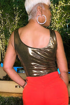 Who needs sparkles when you can shine in the Disco Donna Metallic Bodysuit? Featuring a sultry Gold Bronze color and sleek metallic finish, this bodysuit is sure to make a statement. Ready for a night out? You betta work it, girl! 95% polyester, 5% spandex.