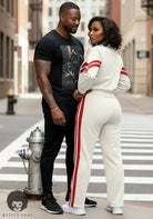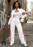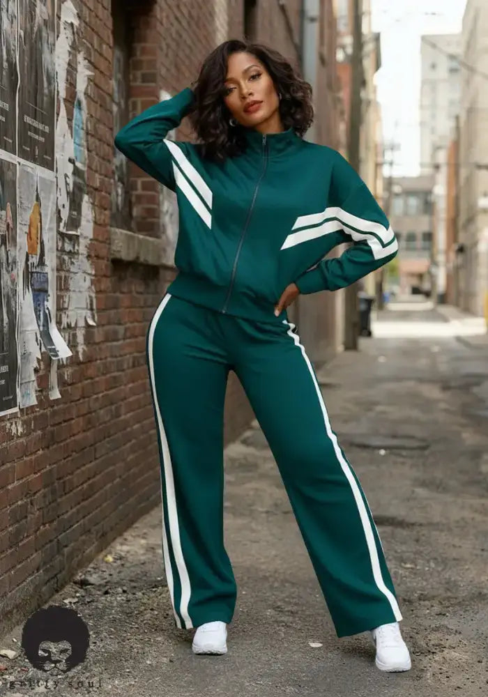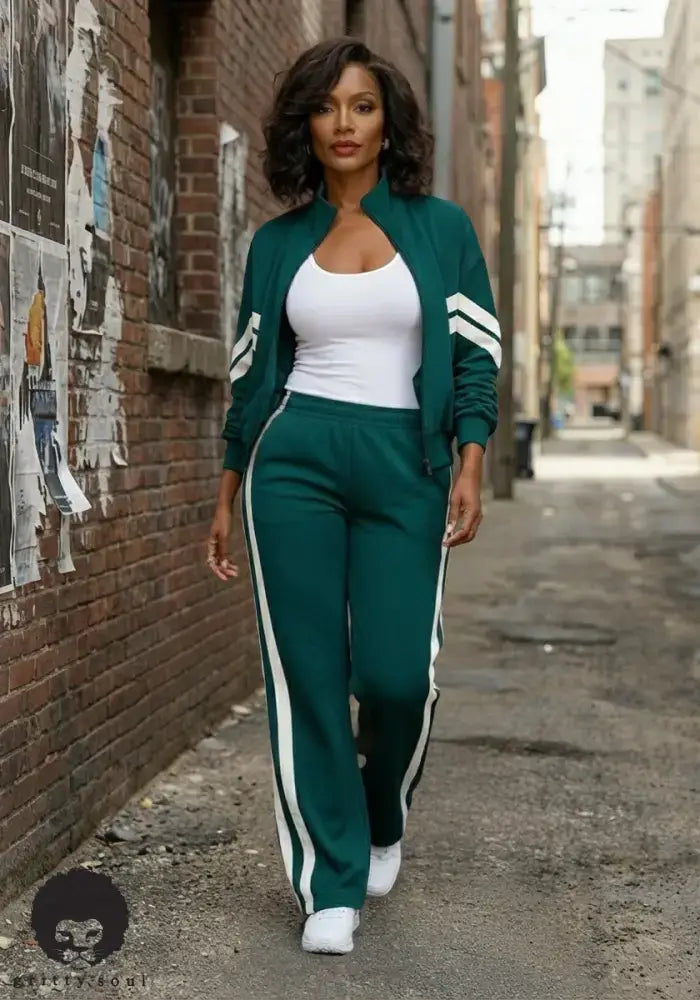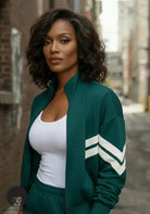 The Double Dash Energy Set is that effortless, sporty-cute fit you throw on when you want to move with confidence and keep your look clean. Soft, comfy, and designed with those bold double side stripes, this set gives grown-woman athleisure without trying too hard. The cropped zip-up jacket and relaxed drawstring bottoms make it perfect for errands, brunch runs, or just serving a little effortless energy on a casual day. If you want that slightly oversized vibe, go up one or even two sizes, boo.