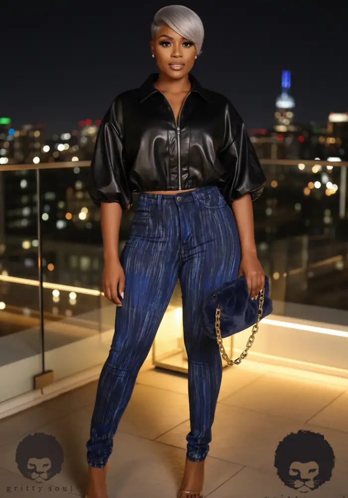 Turn heads in the Electric Pulse Stretch Jeans, a bold statement piece with a high-rise fit and electric blue streak design that pops with every move. Made with premium stretch denim, these jeans hug your curves while keeping comfort at the forefront. Perfect for nights out or elevating your everyday style, they bring that shock factor your wardrobe’s been waiting for.