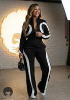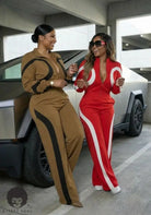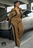 Meet the Foxy Roxy Zip Jumpsuit — sporty, bold, and made for grown-woman movement. This zip-front, long-sleeve jumpsuit is designed to hug your curves while keeping it comfortable and confident. The contrast side panels give a sleek, elongated look, making this an easy go-to for running errands, casual outings, or stepping out looking put-together without trying too hard.
