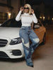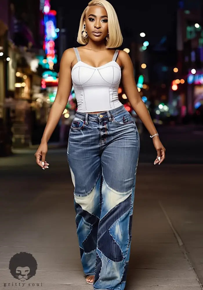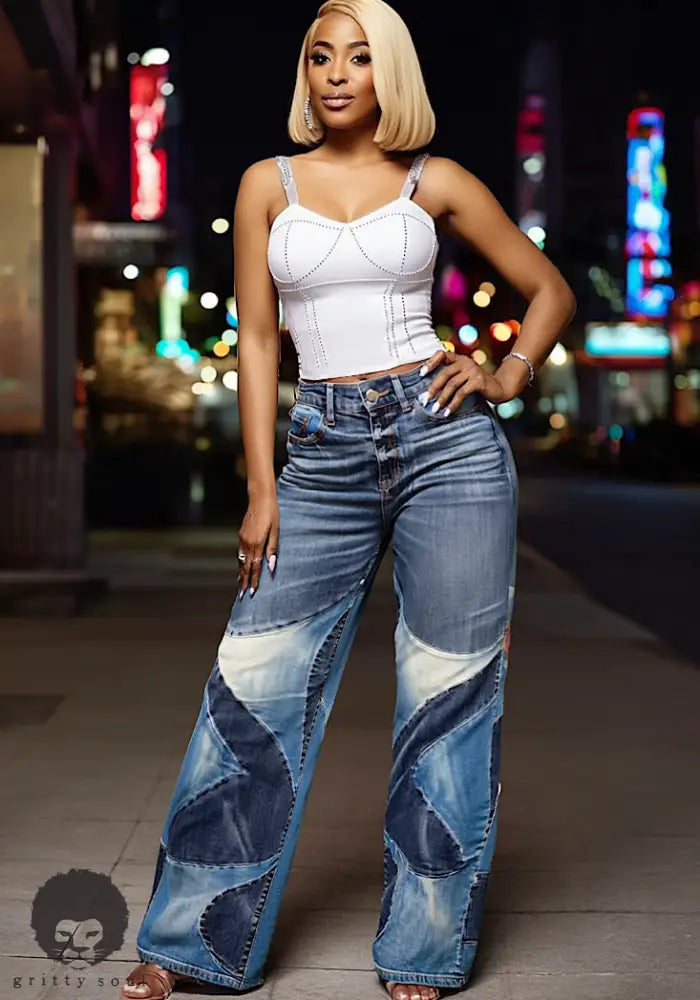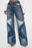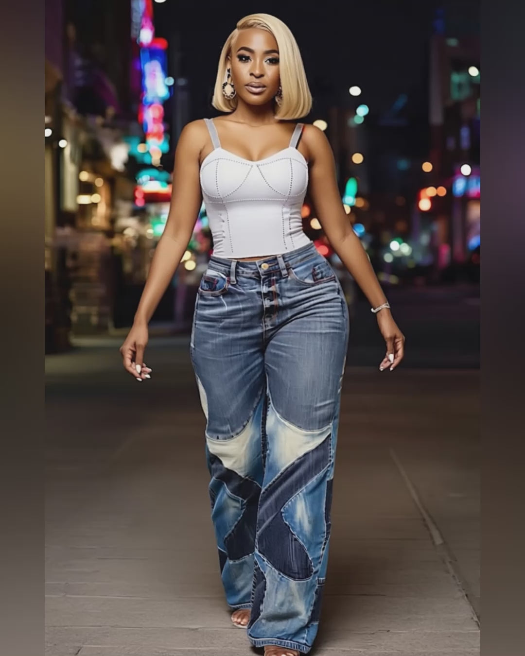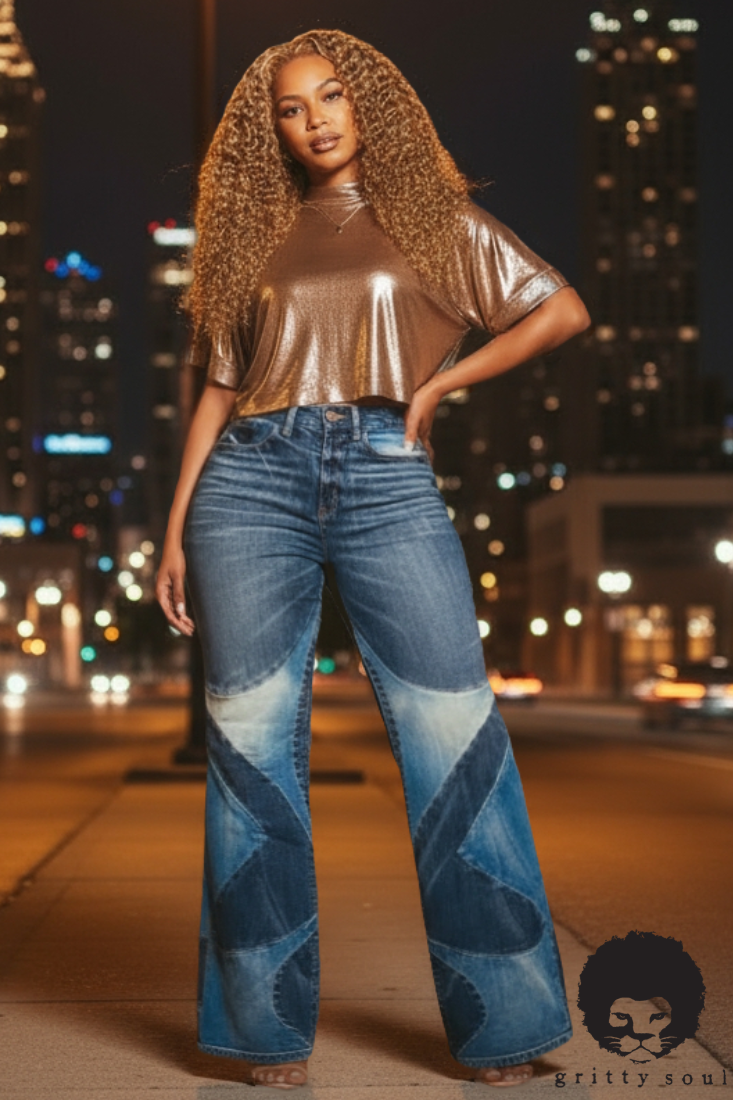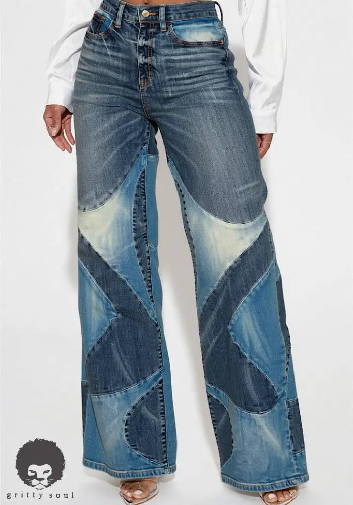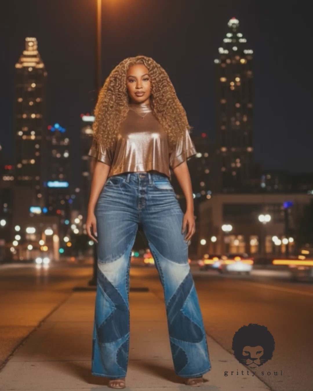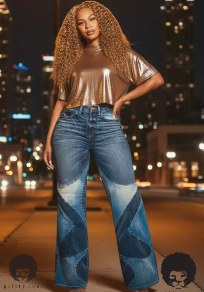 The Freeda Flow Jeans are a fearless blend of artistry and edge. Designed with bold patchwork curves and fluid washes, these wide-leg denims give your look movement even when you’re standing still. Their high-rise fit cinches the waist while the free-flowing leg makes them a statement-maker for day or night. Pair them with heels for instant elevation or keep it casual with sneakers—either way, the vibe is unstoppable.