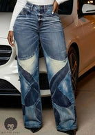 - Unique patchwork denim design with fluid curve patterns