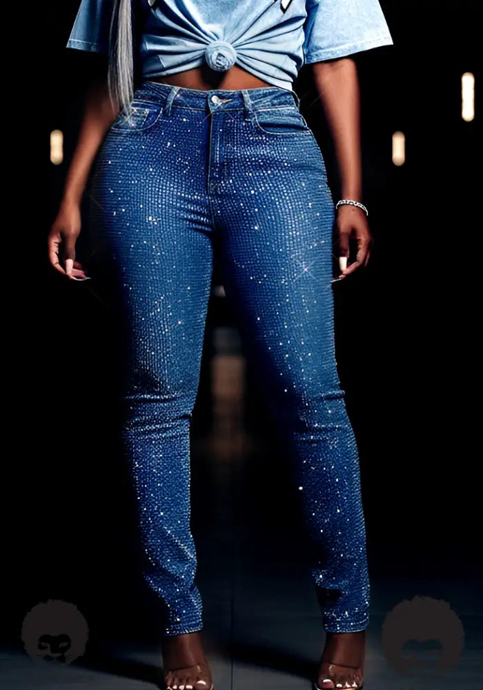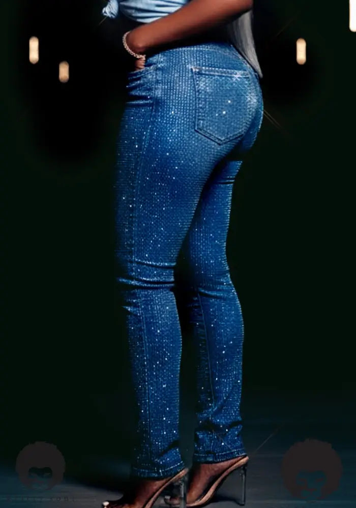 Frostbite Flex Jeans bring icy glam with a sleek fit that hugs and flexes in all the right places. Designed in a light wash and drenched in rhinestones, these jeans catch the light with every step. The straight-leg silhouette makes them versatile enough for heels or sneakers, while the stretch gives you comfort without losing that luxe edge. Bold, grown-woman denim that’s made to shine.