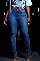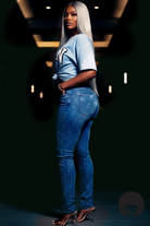 Frostbite Flex Jeans bring icy glam with a sleek fit that hugs and flexes in all the right places. Designed in a light wash and drenched in rhinestones, these jeans catch the light with every step. The straight-leg silhouette makes them versatile enough for heels or sneakers, while the stretch gives you comfort without losing that luxe edge. Bold, grown-woman denim that’s made to shine.