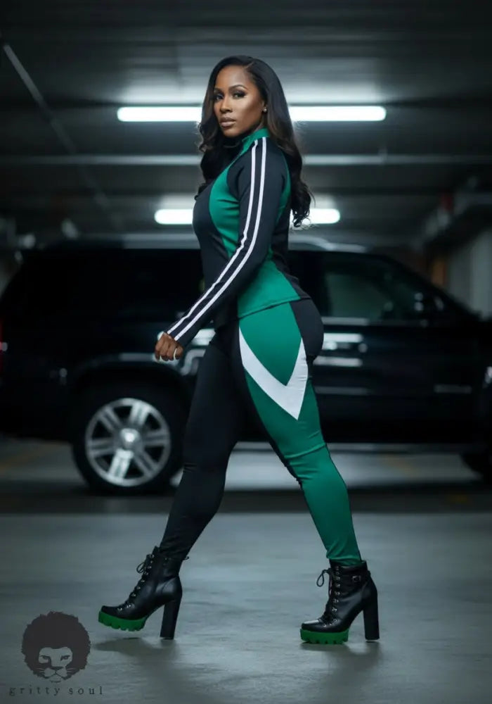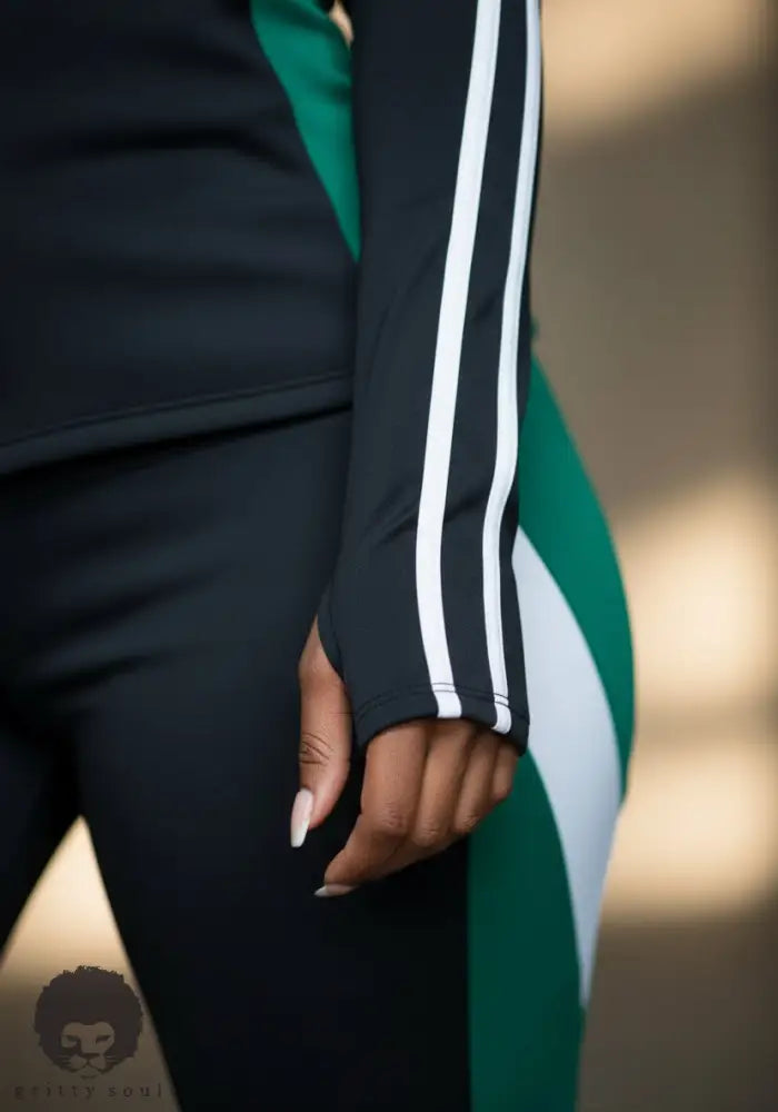 Speed meets style in the Greenline Zip Tracksuit — a sleek, body-contouring two-piece that moves with you. Crafted in bold crimson red with deep charcoal paneling and contrast white stripe detailing, this set blends performance and fashion seamlessly. The zip-front jacket features thumbhole sleeves for a snug fit, while the high-stretch leggings sculpt your shape with smooth compression and curve-defining seams. Whether you’re running errands or catching flights, this fit says “always in motion.”