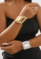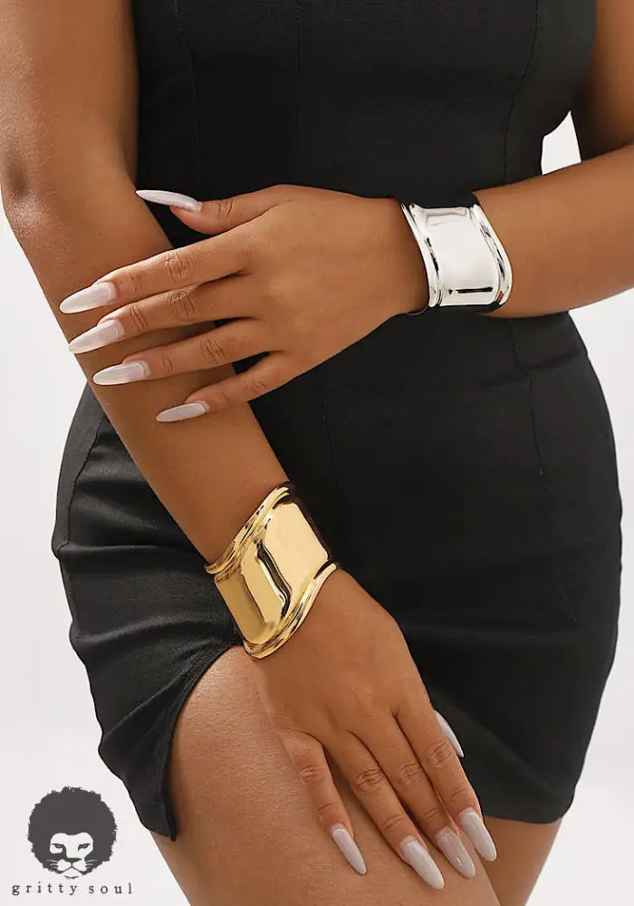 The Gritty Goddess Cuff Bracelet is unapologetically bold and luxuriously sleek. With its high-shine metallic finish and sculptural wave design, this cuff instantly elevates any look from simple to striking. Whether you wear it solo as a statement or stack it for maximum impact, it’s the ultimate power piece for your wrist.