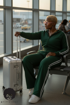 Level up your off-duty look with the Hooded Hustle Jumpsuit — where comfort meets serious street appeal. This ultra-soft fleece one-piece features a zip-up front, cinched elastic waist, and double side stripes that give athletic energy with a luxe twist. Whether you’re running errands, catching flights, or just chillin’, this look moves with you — effortlessly stylish from top to toe.
