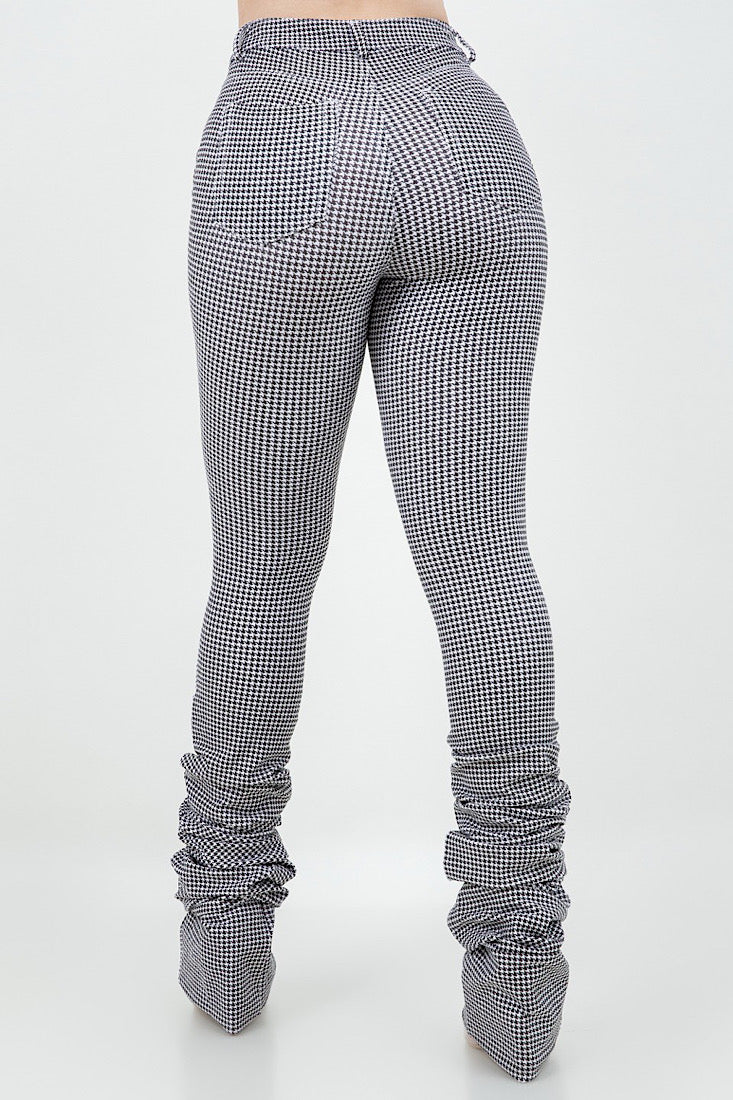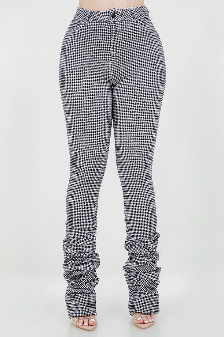 The Houndstooth Hottie Pants serve curves and confidence with a classic-meets-trendy twist. Designed in a bold houndstooth print, these high-rise slim pants hug in all the right places before stacking down the leg for that modern, ruched effect. Perfect for dressing up with heels or keeping it casual with sneakers, they’re the ultimate day-to-night vibe.