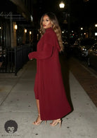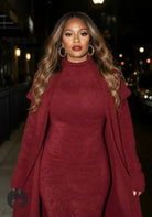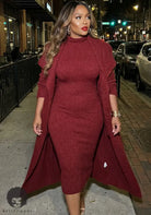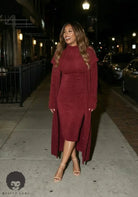 The Krystal Knit Midi Dress Set is that effortless, grown-woman elegance you throw on when you want to look polished without doing the most. This two-piece set features a sleek, curve-hugging knit midi dress paired with a matching longline drape topcoat that adds instant drama and movement. The textured knit fabric gives a luxe look while still feeling comfortable and wearable. Whether you’re stepping out for dinner, work events, or styled-up everyday moments — this set speaks confidence, class, and pressure.