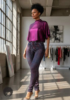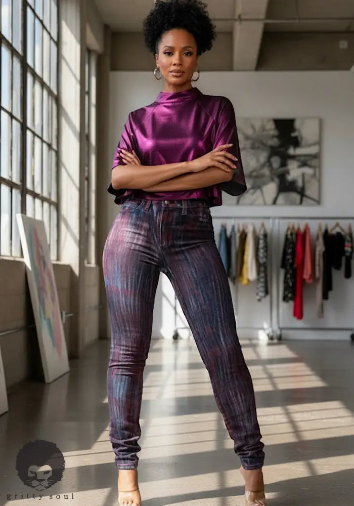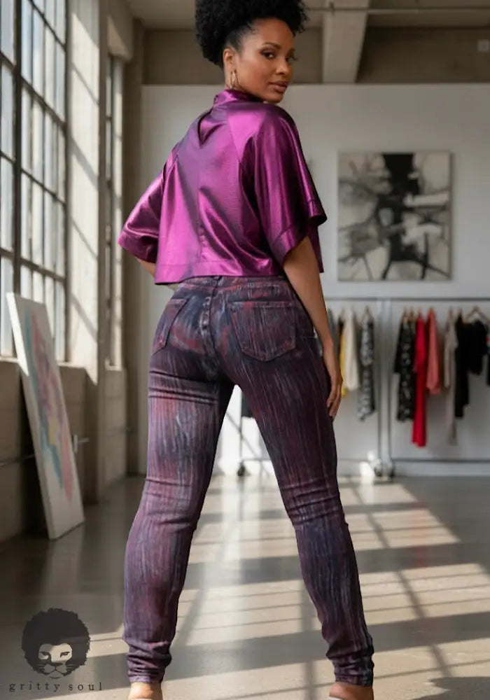 Turn heads in the Lava Luxe Stretch Jeans – a fiery statement piece that brings boldness to your everyday looks. Featuring a sleek high-waist fit with a streaked red and black wash, these jeans hug your curves with just the right amount of stretch. Dress them up with a glam crop top or keep it casual with a fitted tee – either way, they’re the pair that refuses to blend in.