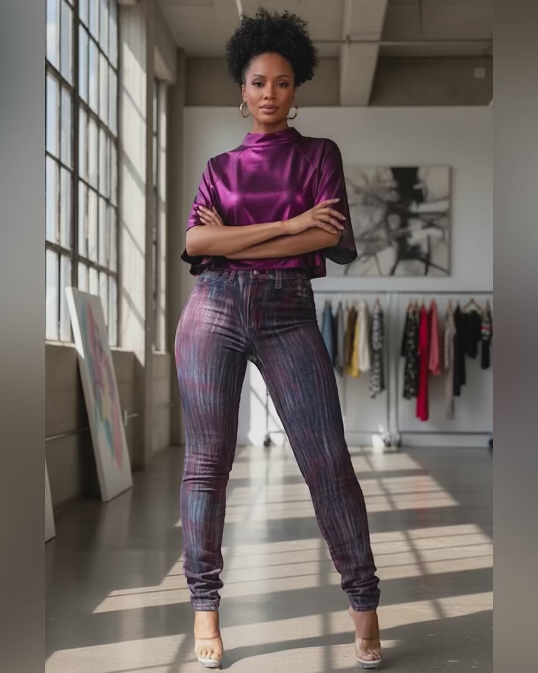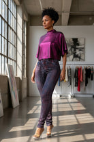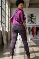 Turn heads in the Lava Luxe Stretch Jeans – a fiery statement piece that brings boldness to your everyday looks. Featuring a sleek high-waist fit with a streaked red and black wash, these jeans hug your curves with just the right amount of stretch. Dress them up with a glam crop top or keep it casual with a fitted tee – either way, they’re the pair that refuses to blend in.