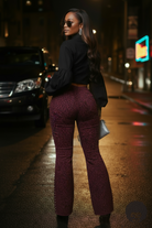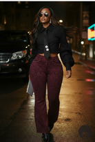 Bring the heat in the Red Riot Flare Denim — a bold mix of wild print and luxe detail that turns heads from every angle. Crafted with a deep red leopard pattern and pearl-studded accents, these bell-bottom jeans are a power move in denim form. The medium-stretch fit hugs your curves while keeping comfort locked in, finished with a high-rise waist and full-length flare that delivers major leg energy.