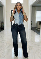 Midnight Contour Jeans are that clean, confident black denim that hugs your curves without feeling stiff. Designed with a high-rise fit and a sleek straight leg, these jeans give you a smooth waistline and a leg-lengthening look. The subtle side slit at the ankle adds just enough edge—perfect for showing off your heels while keeping the silhouette polished. Dress them up for dinner or keep it casual—either way, you’re stepping out like the main event.