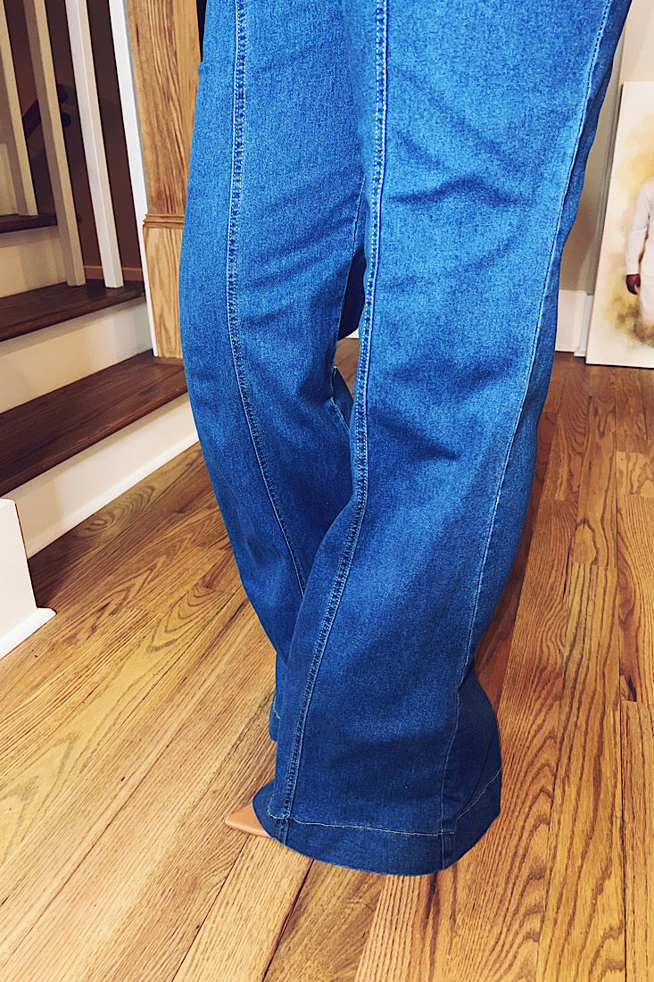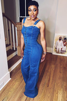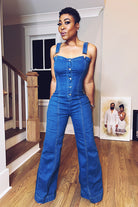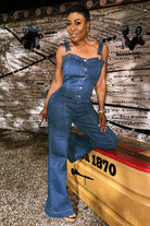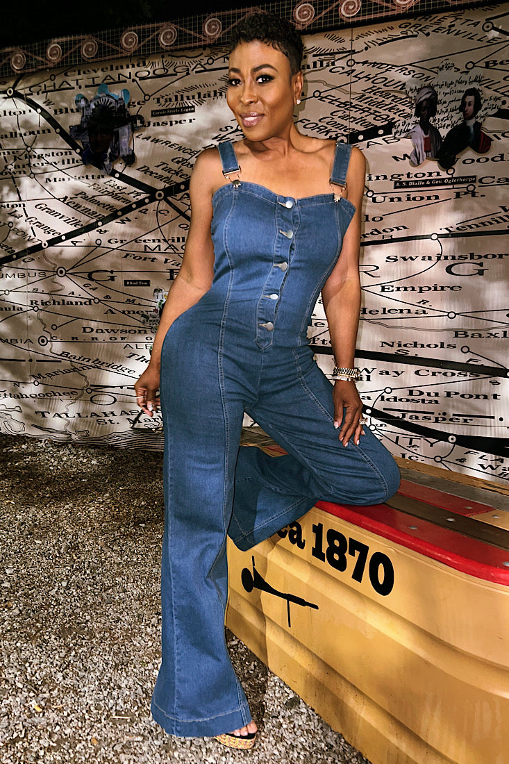 Meet the Miss Hourglass Jumpsuit—designed to hug your waist, lift the girls, and flow with every step. This denim one-piece is all curves, no compromise. The thick straps and button-up front give structure, while the stretch-back bust keeps it comfy. Snatched where it should be, wide where it needs to be.