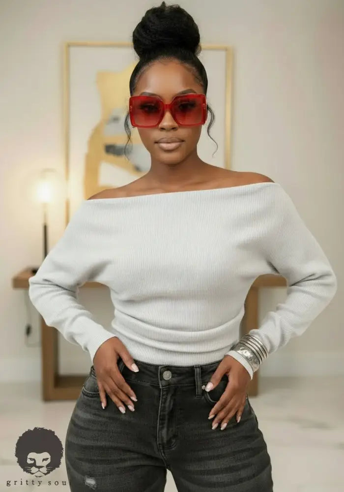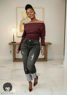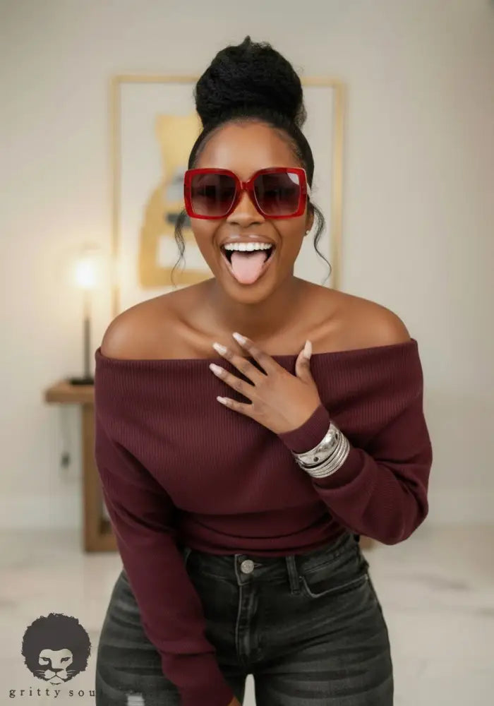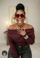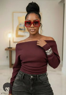 The Shiloh Sway Off-Shoulder Top is that smooth, feminine moment your wardrobe has been waiting for. This rich burgundy knit drapes effortlessly across the shoulders, giving you that soft, sultry neckline without even trying. The ribbed texture hugs your curves gently while the subtle ruching cinches at the waist for that grown-woman silhouette we all love. Slight stretch keeps it comfortable, polished, and perfect for pairing with denim, cargos, or a statement skirt.