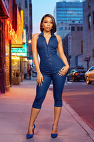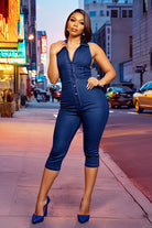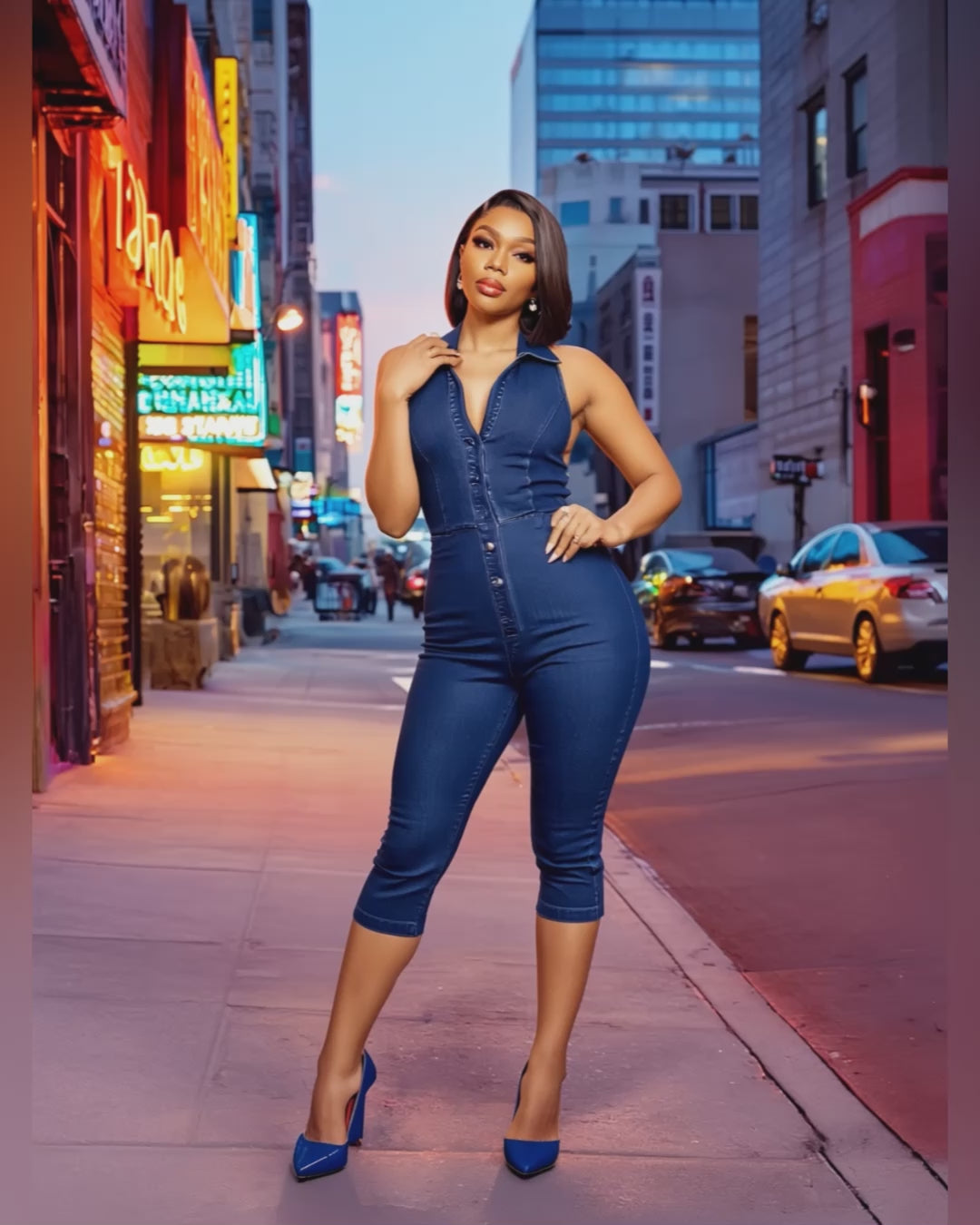 The Peggy Power Romper is giving retro bombshell energy with a modern denim twist. Featuring a halter neckline, button-front detail, and curve-hugging fit, this one-piece is made to turn heads. The cropped leg cut keeps it playful yet chic, while the open back adds the perfect dose of sass. Step into this romper when you’re ready to channel unapologetic confidence, just like the queen herself.