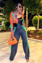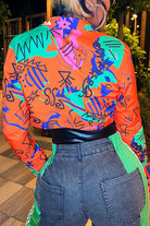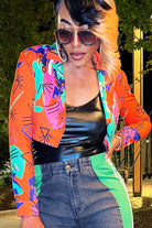 Make a statement without saying a word in the Pop Off Print Jacket. This cropped blazer turns every sidewalk into a runway with its bold, abstract print and vibrant color mix. Lightweight but loud, it’s perfect for layering over tanks, bodysuits, or even a basic tee when you wanna do the most.