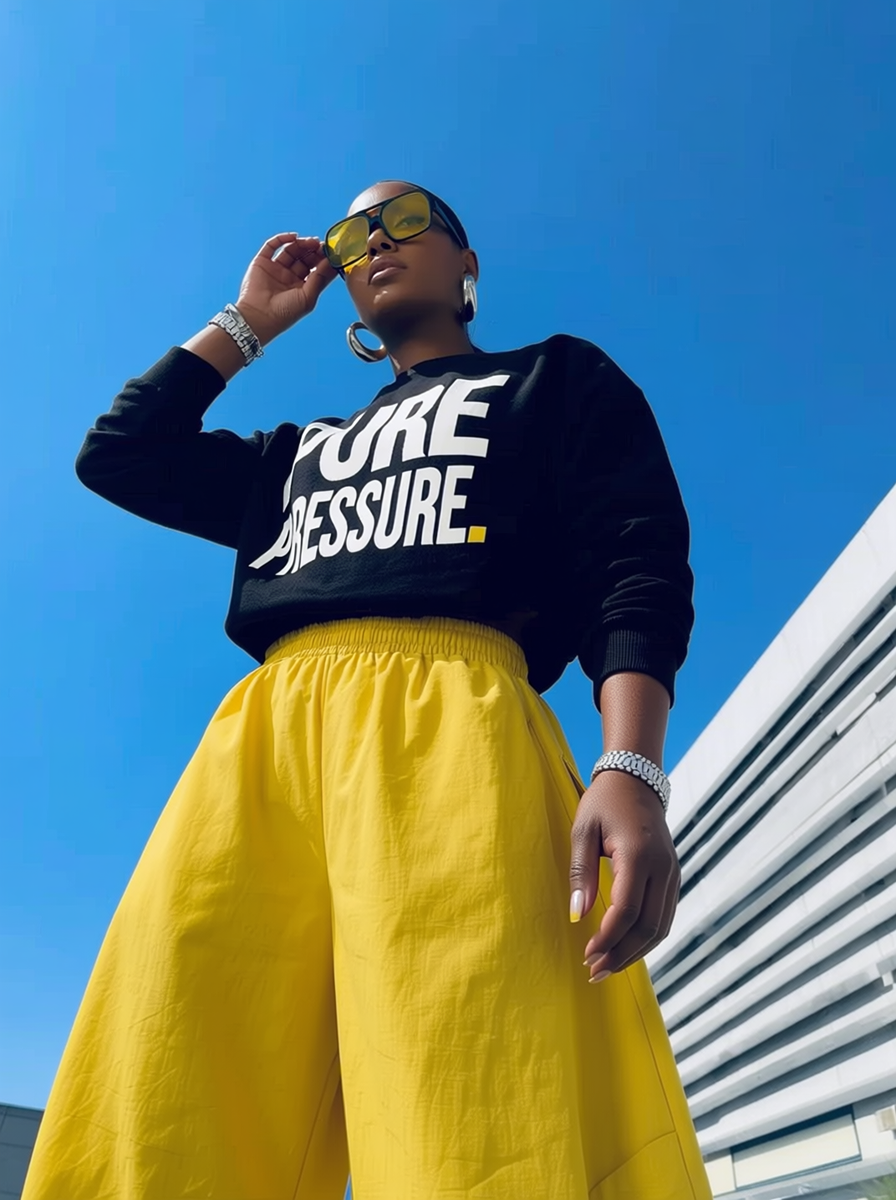 Pure Pressure Sweatshirt is not loud — it’s commanding. Designed for the woman who doesn’t chase attention… she applies pressure just by showing up. Bold, minimal typography makes the statement clear, while the classic crewneck fit keeps it effortlessly wearable.