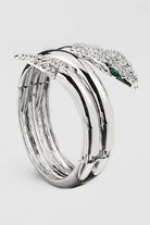 The Python Glam Cuff is a bold, serpentine statement piece designed to command attention. Wrapped in shimmering rhinestones with emerald-like eyes, this slip-on bangle blends luxe edge with timeless allure. Available in both gold and silver finishes, it’s the perfect wrist candy for stacking or wearing solo when you want your accessories to strike with confidence.