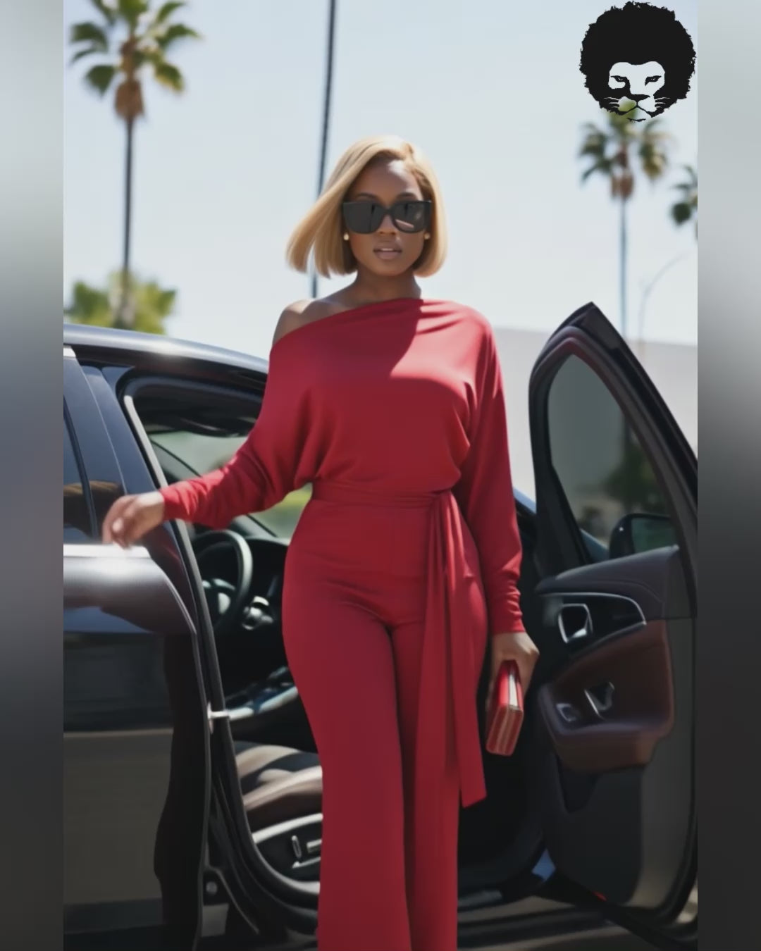 The Red Muse One-Shoulder Jumpsuit is made for bold entrances and unforgettable exits. With its striking off-shoulder drape, waist tie detail, and wide-leg silhouette, this piece balances sophistication with a sultry edge. Whether styled with heels for a night out or dressed down for effortless chic, it’s a statement jumpsuit that commands attention.