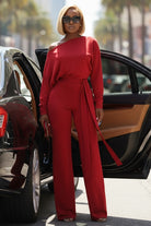 The Red Muse One-Shoulder Jumpsuit is made for bold entrances and unforgettable exits. With its striking off-shoulder drape, waist tie detail, and wide-leg silhouette, this piece balances sophistication with a sultry edge. Whether styled with heels for a night out or dressed down for effortless chic, it’s a statement jumpsuit that commands attention.