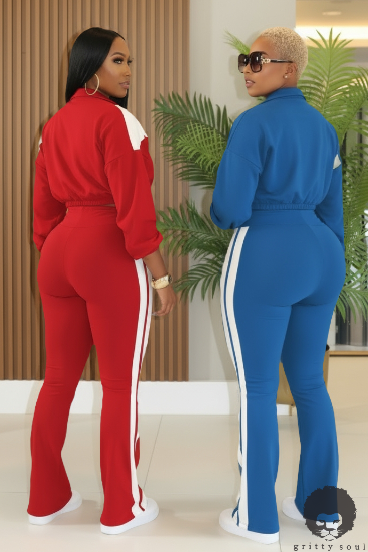 The ShaKari Trackstar Set delivers grown-woman athletic luxe with a bold throwback edge. Designed for movement, curves, and confidence, this two-piece features a cropped zip jacket with contrast panels and matching high-waist flare pants that elongate your shape. Whether you’re catching flights, hitting errands, or stepping out styled like a champion — this look brings that Sha’Carri energy every time. 💨
