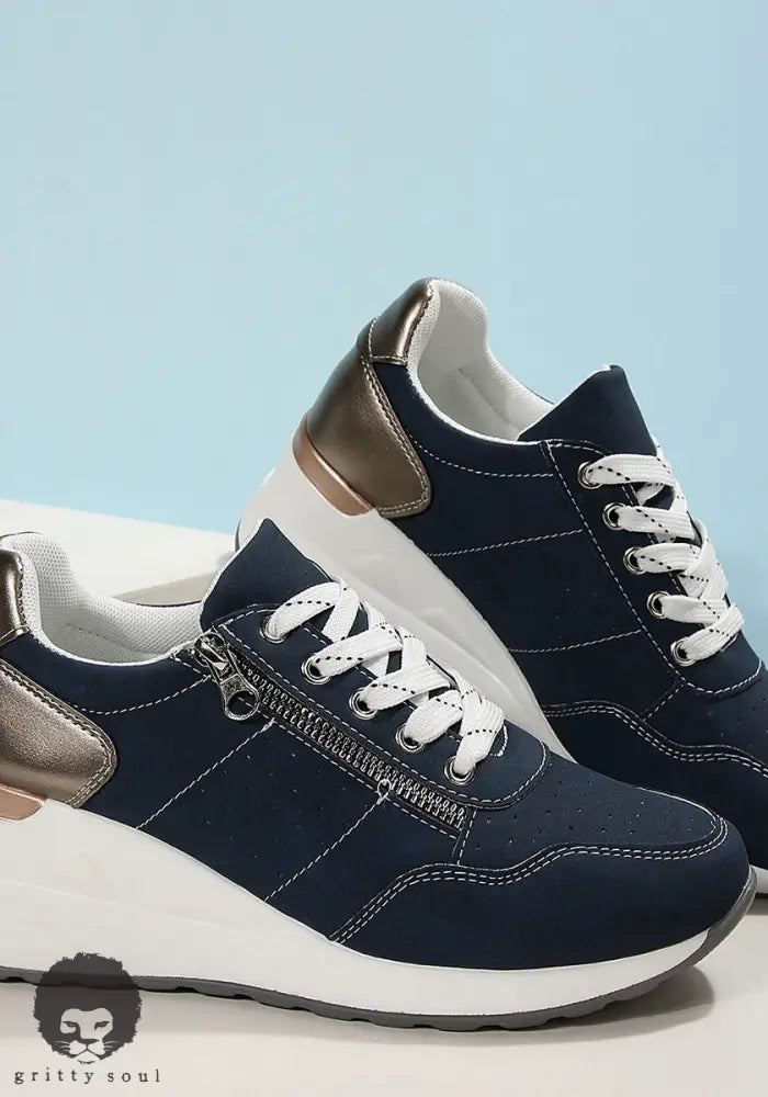 These sneakers were made for real life — busy days, long walks, and outfits that still need a little lift. Designed with a supportive wedge sole and a soft, flexible upper, they bring comfort without sacrificing style. The perforated design keeps things breathable, while the side zipper makes slipping them on effortless. Whether you're running errands or stepping out casual-cute, these sneakers move how you move.