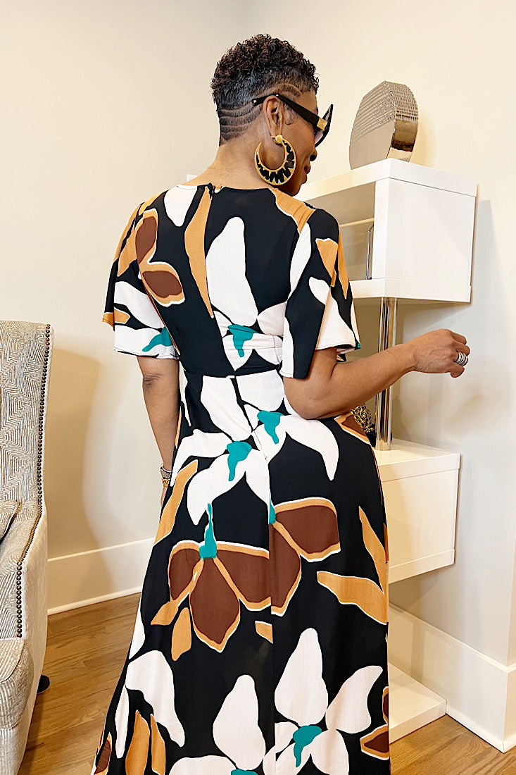 Elevate your wardrobe instantly with the Brownstone Maxi Dress. Designed with a bold floral pattern, airy sleeves, and a sophisticated high-low hemline, this dress brings effortless elegance wherever you go. The waist tie detail snatches your silhouette flawlessly. Pair it with your favorite heels and accessories for a head-turning vibe that's undeniably voguish and completely you! 💅🏾